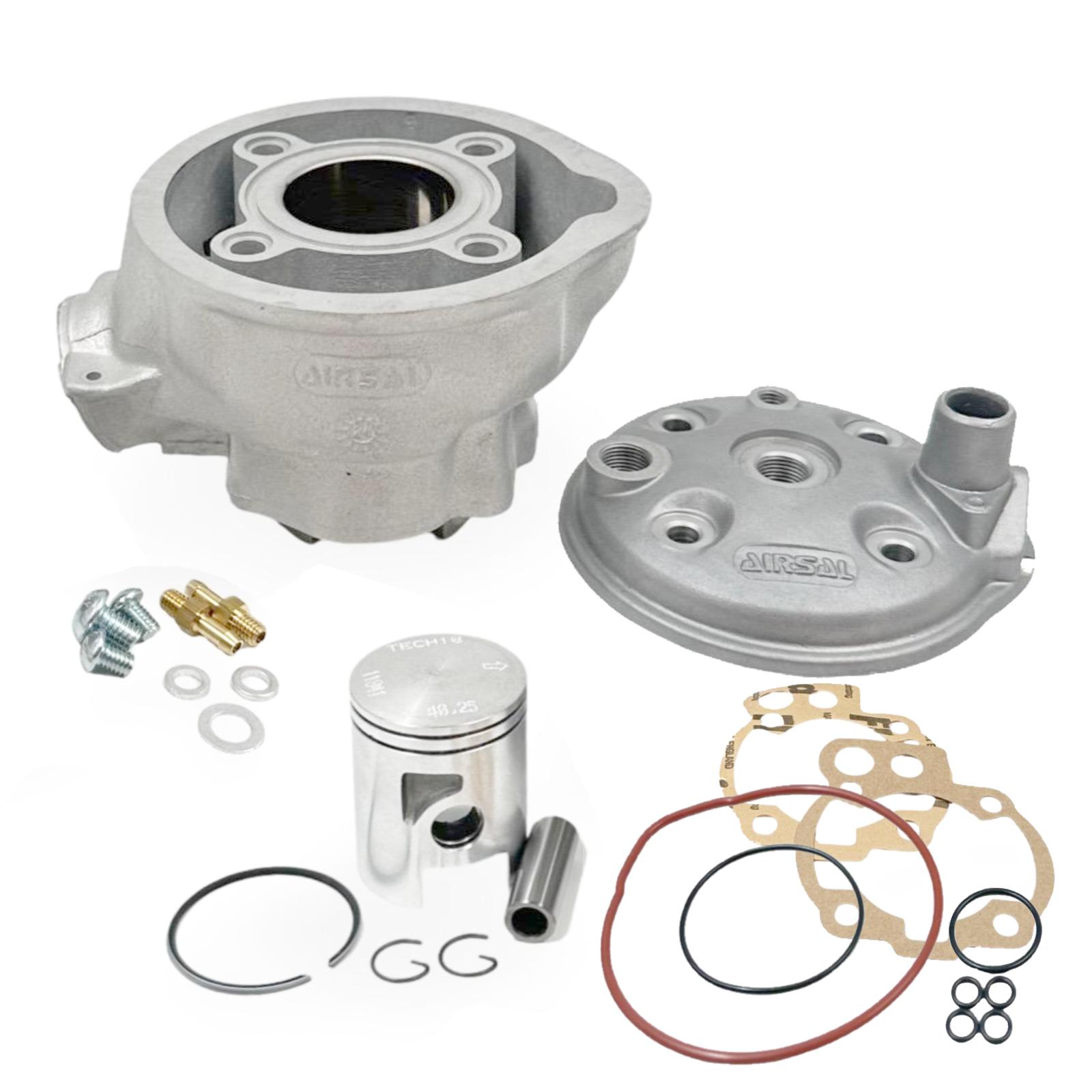 Tekant suosittelee! Airsalin tehokas ja suorituskykyinen alumiininen 50cc nicasil-pinnoitettu virityssylinterisarja kaksiosaisella pakoaukolla, viidellä huuhtelukanavalla ja laadukkaammalla männällä.