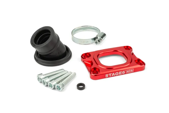 Stage6 360° imukaula on huippuluokan viritysosa, joka on suunniteltu erityisesti Minarelli AM6– ja Derbi Euro 2–4 -moottoreihin. Se mahdollistaa Dellorto PHVA- sekä PHBG 12-21 mm -kaasuttimien tarkan ja joustavan asennuksen. Imukaulan 360° kääntyvä kumilaippa tarjoaa optimaalisen asennusvapauden, mikä on erityisen hyödyllistä tiukoissa tiloissa tai erikoisrakenteisissa kehyksissä.