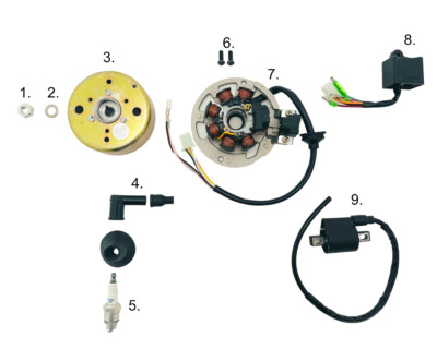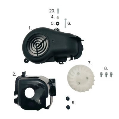 Yamaha Jog 2T-skootterin sopivat varaosat räjäytuskuvittain.